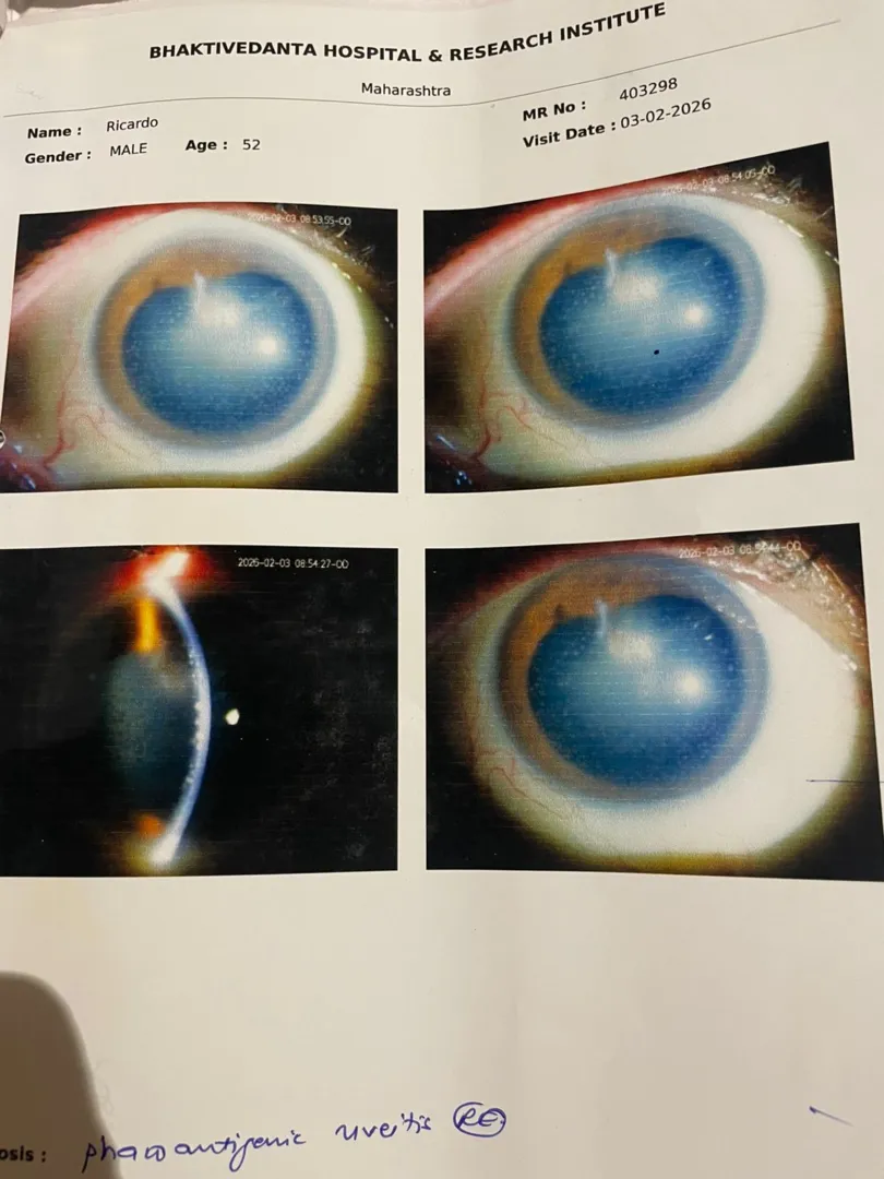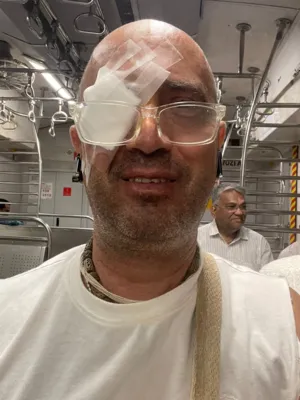 In October 2025, while constructing a guest house for visiting devotees, a wire pierced my right eye, causing severe damage and immediate loss of vision.