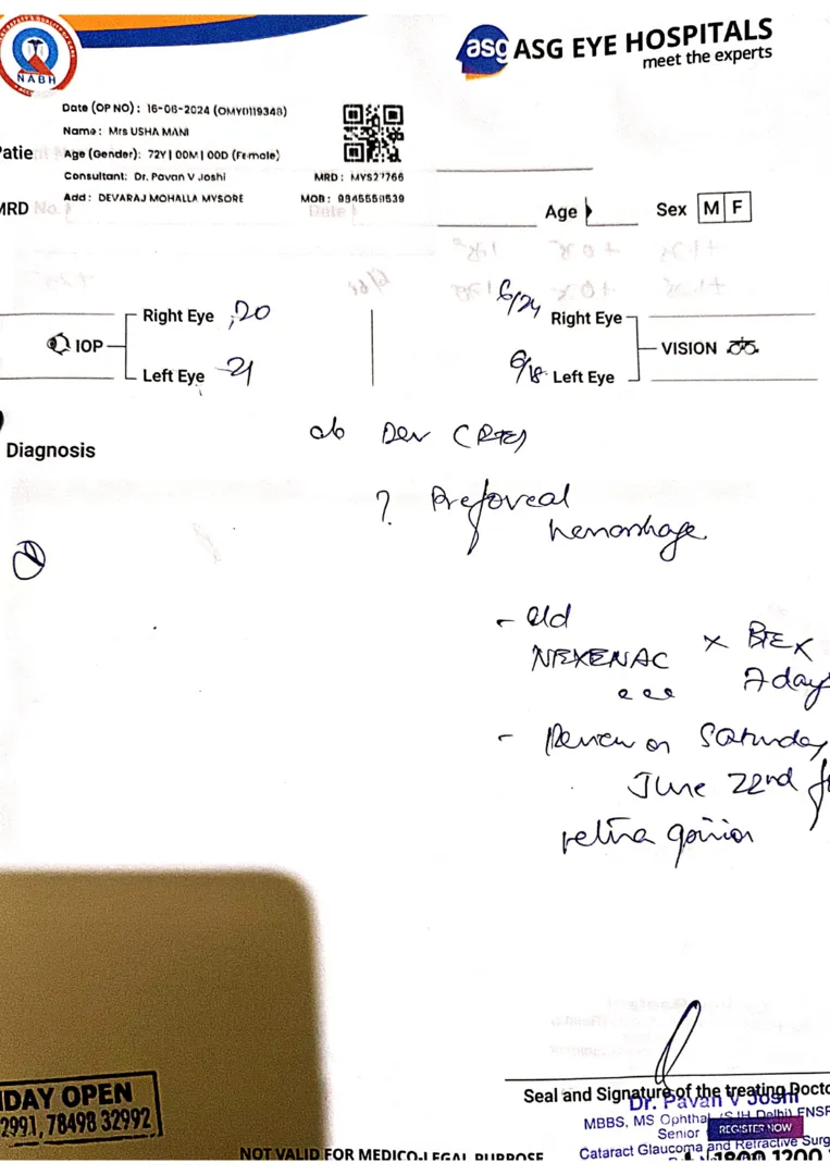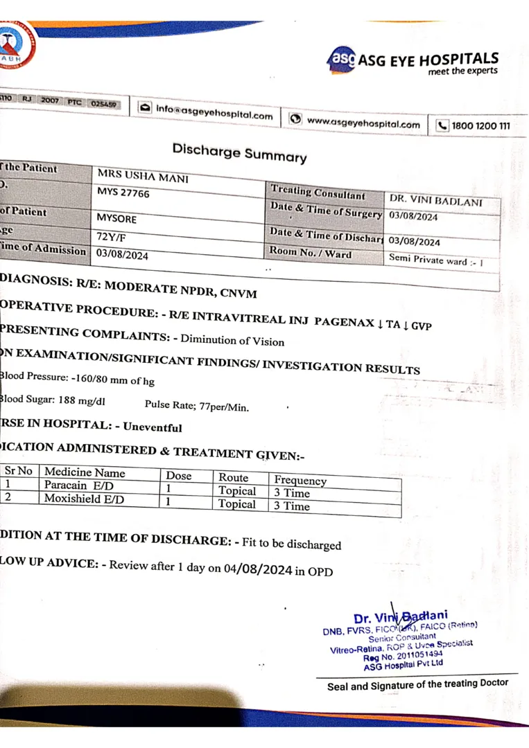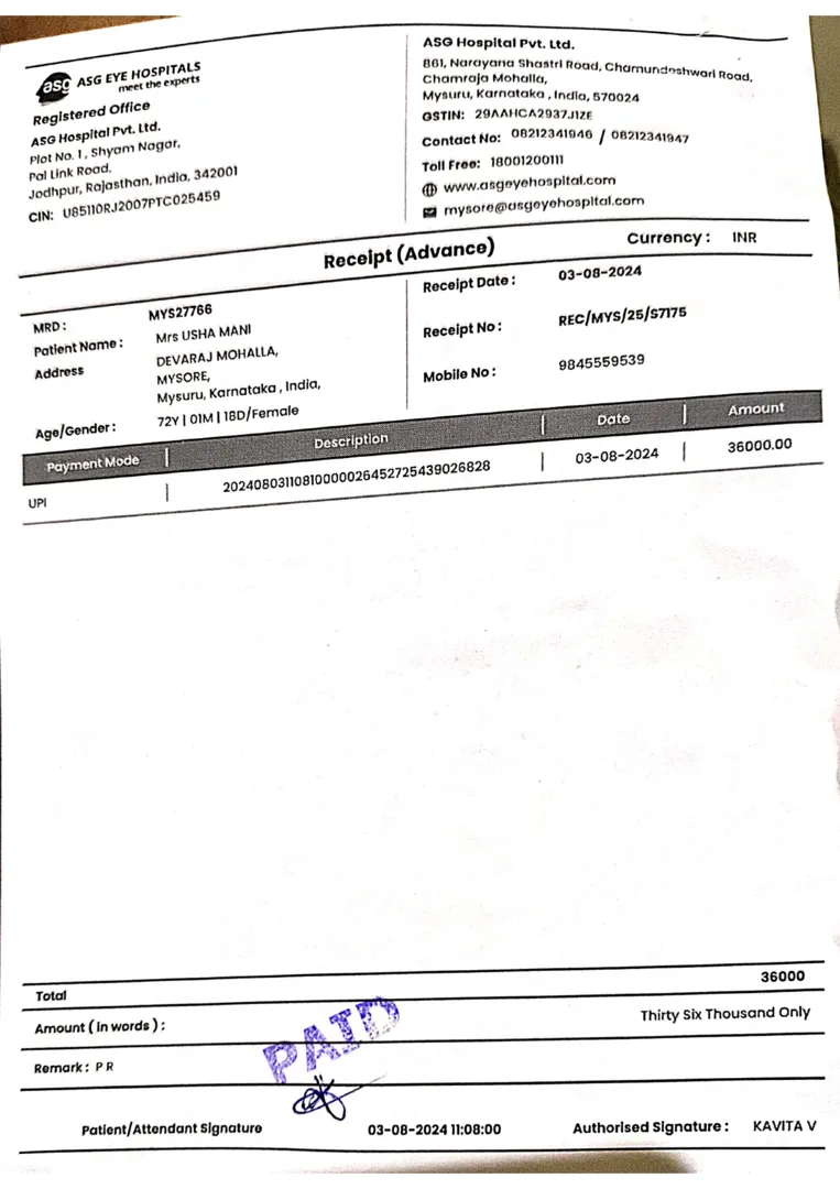 My name is Vraja Vinoda Shyama Dasa, and I am writing on behalf of Ushamani Mataji, a 76-year-old widow residing in Mysore, who is in urgent need of financial assistance for her medical treatment.