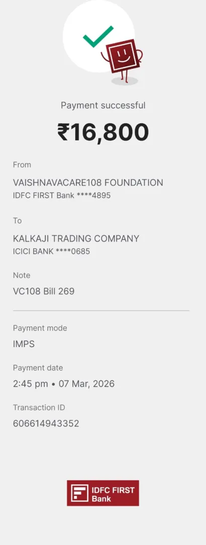 If the beneficiary is not able to submit the bills for the entire amount collected in a particular campaign due to which some amount remains with us, then VaishnavaCart108® will utilize it for future campaigns.